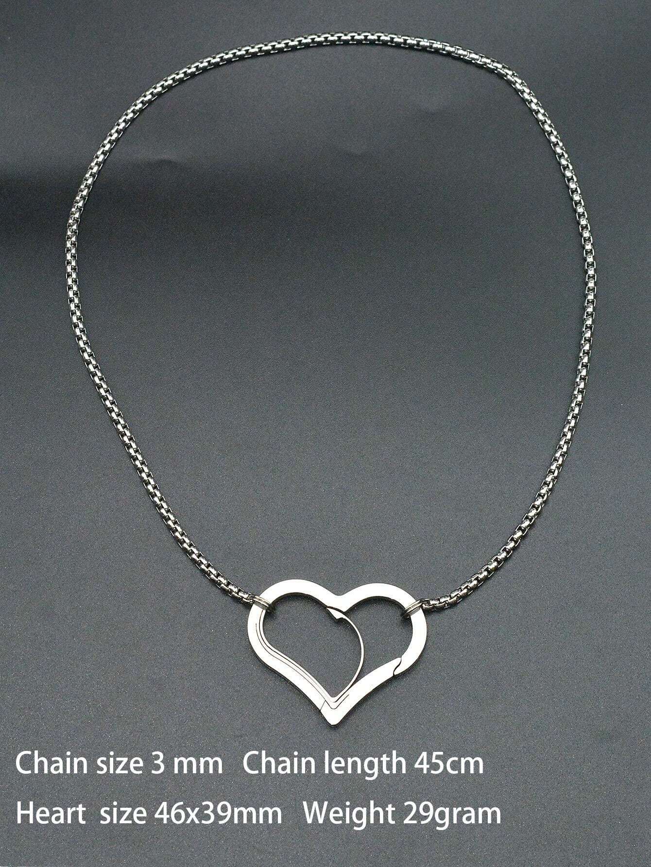 ONE Laser Cut Heart Clasp Link Pendant Necklace Choker 3mm Stainless