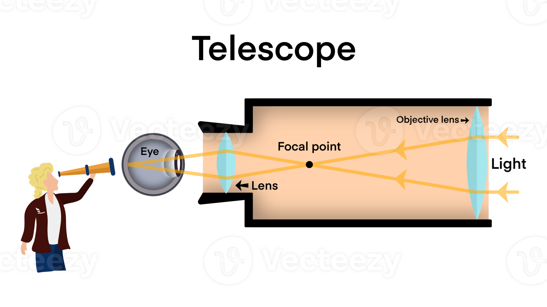 Reflector Vs. Refractor Telescope  The larger is called the objective lens, which focuses incoming light inside the tube. The light then reflects and hits the secondary mirror placed at the center of the tube. The smaller is called the eyepiece lens, which focuses the light for viewing. Refractors utilize specially designed lenses to focus the light into an image. We'll compare key factors such. Reflector Vs. Refractor Telescope.