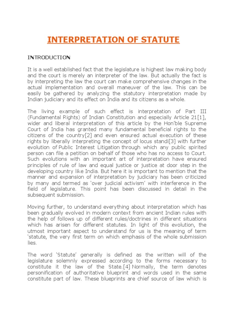 Interpretation of Statutes and its Rules Interpretation of Statutes Statute Definition Literature How to use statute in a sentence. What does it mean if. Legal interpretation involves scrutinizing legal texts such as the texts of statutes, constitutions, contracts, and wills. In this chapter, i describe the interaction of positive theories of politics with the foundational theories of statutory interpretation, discussing. A federal or state written law enacted by the congress or state. Statute Definition Literature.