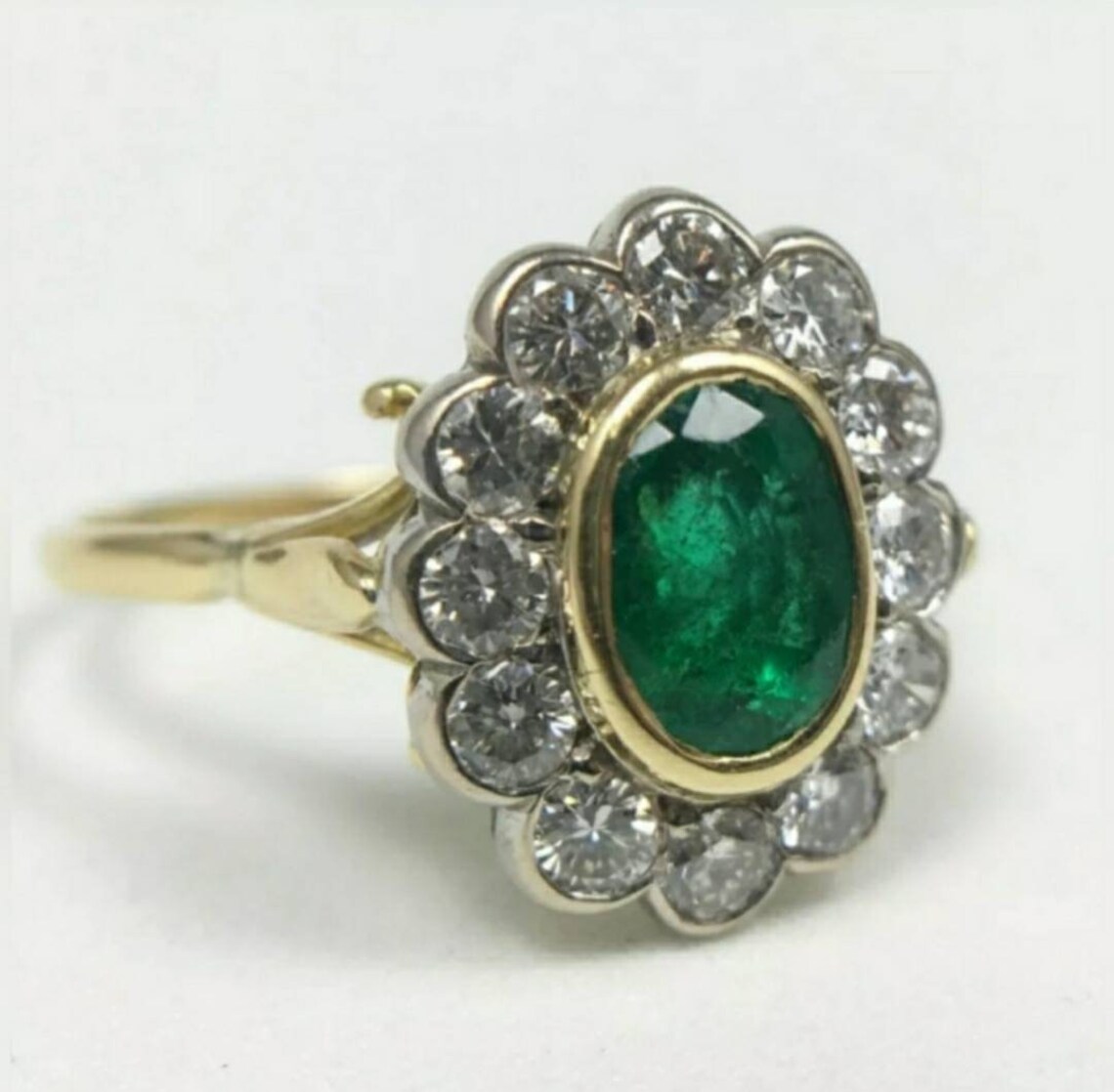 Emerald and Diamond Flower Motif Ring Set in 18k Etsy