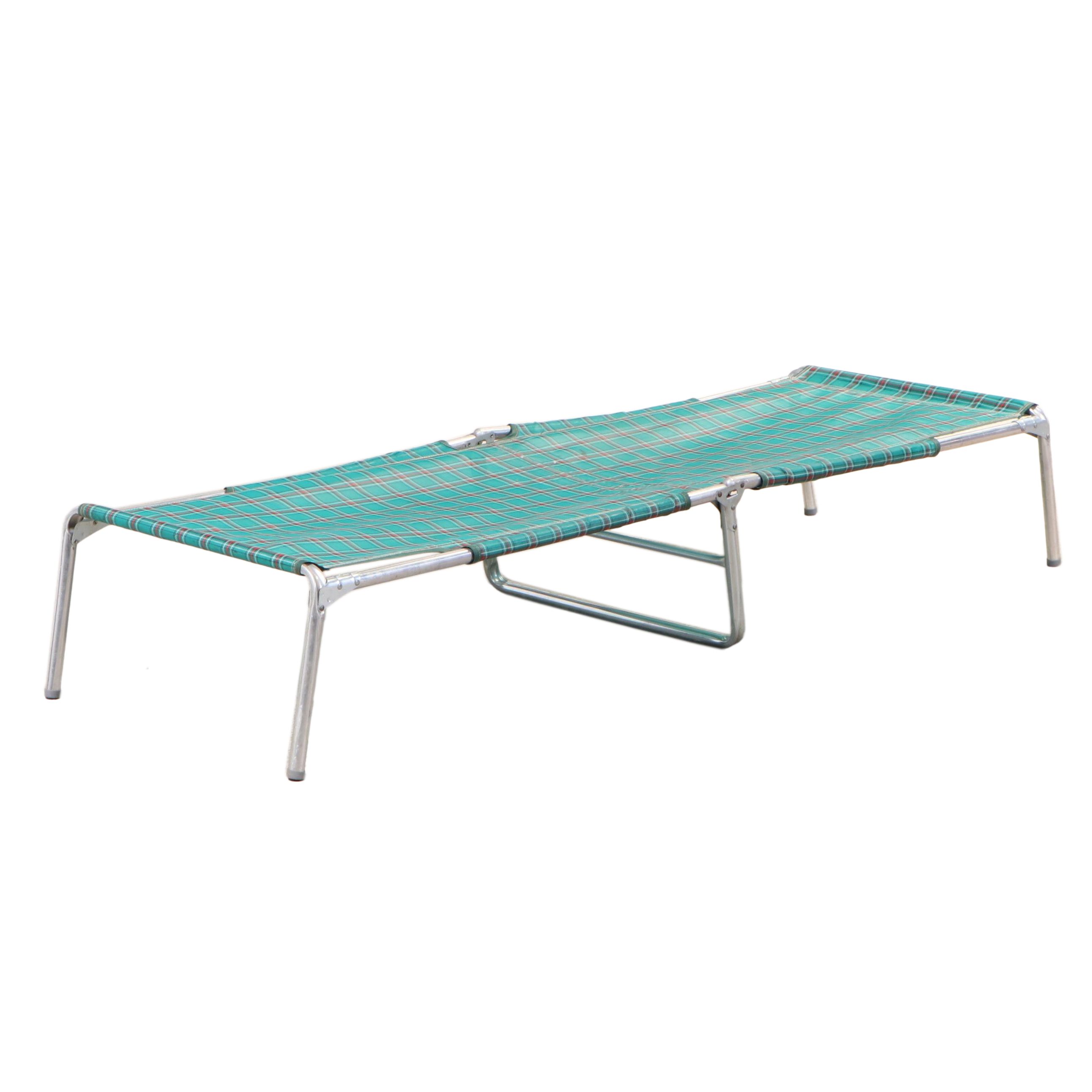 Tubular Aluminum Folding Cot with Plaid Cover, Late 20th Century EBTH