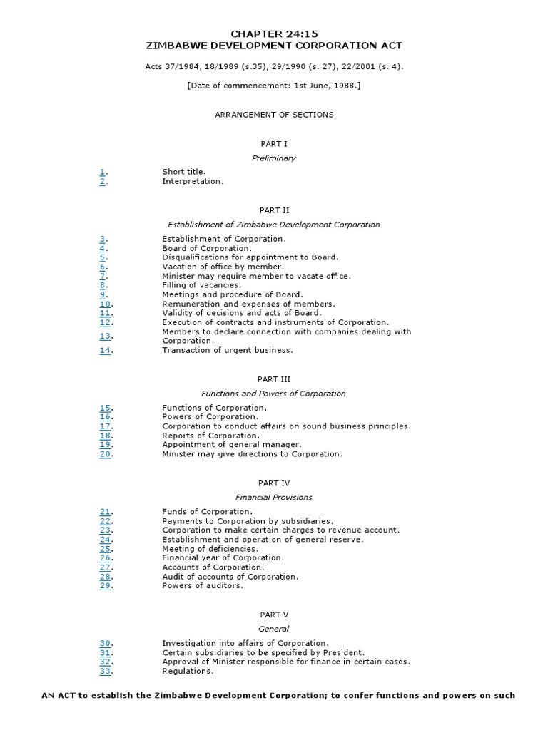 Zimbabwe Development Corporation Act, No. 37 of 1984 PDF