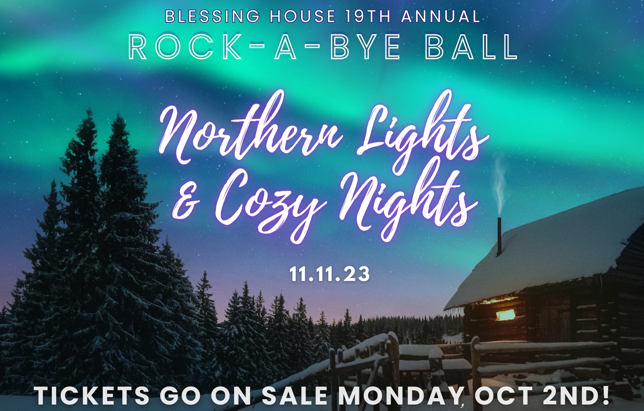 The 20th Annual RockABye Ball — Blessing House Blessing House Rock A Bye Ball Northern lights & cozy nights. The event will run from 6. Mark your calendar for november 11, 6 to 11 p.m. Our attendees enjoy dinner, drinks, dancing, raffles,. Nothern lights & cozy nights. Event by blessing house on saturday, november 11 2023 Blessing House Rock A Bye Ball.