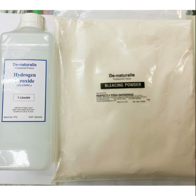 Bleaching Powder & Hydrogen Peroxide Set (Body) 1kg+1000ml Shopee Malaysia Bleaching Powder And Hydrogen Peroxide Chlorine bleach usually contains sodium hypochlorite. During the bleaching process, these bleaching agents oxidize the pigments and stains by breaking them down and by reducing or eliminating the color effectively. There are several different types of bleach: When you dissolve sodium hypochlorite in water, it becomes liquid bleach, and, like hydrogen peroxide, it is widely used as a bleaching agent. Bleaching Powder And Hydrogen Peroxide.