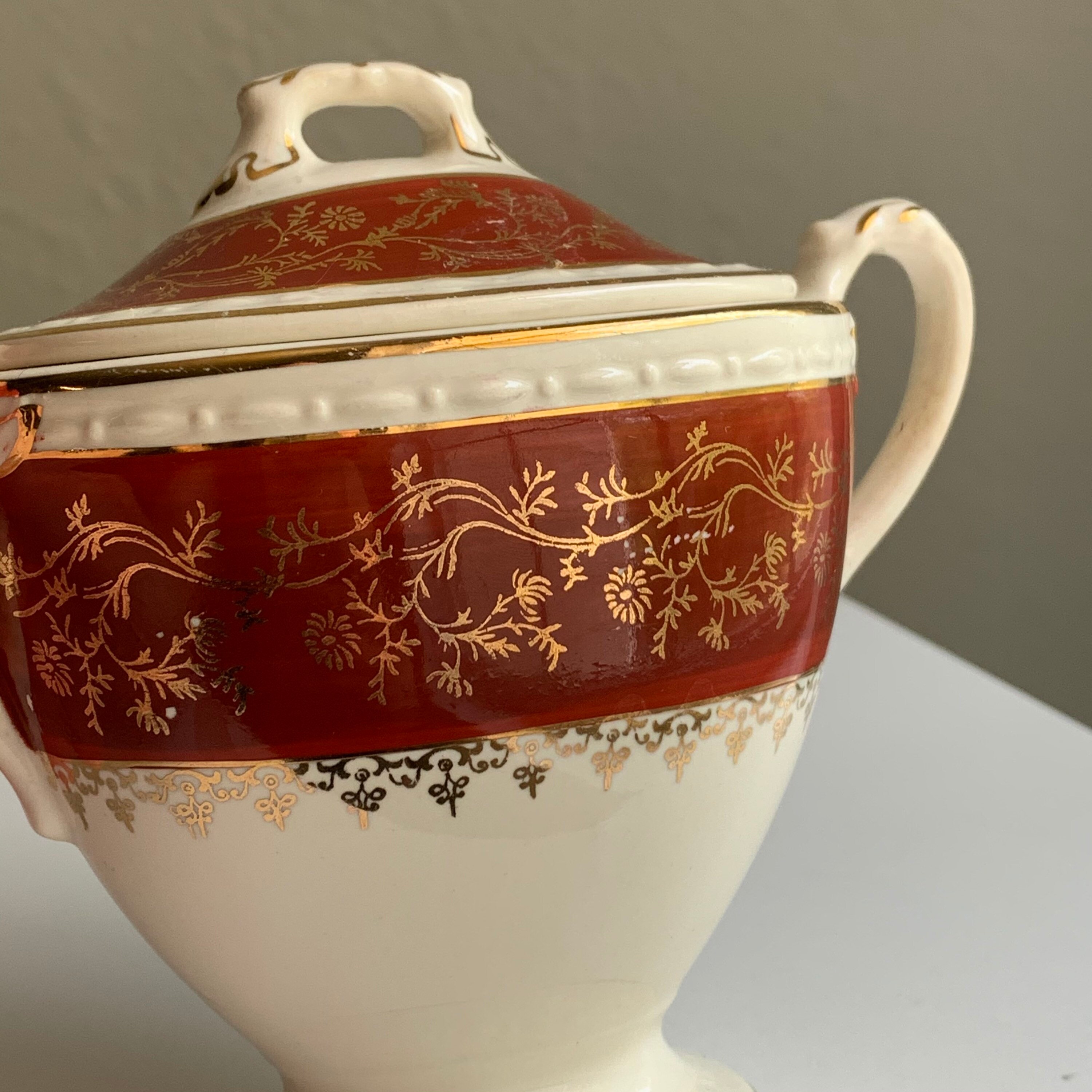 Sugar Bowl with Lid, Edwin M. Knowles Ivory 2911 » Antigo Trunk Craftsman Sugar Bowl 5 1/2 inches handle to handle end, also a matching milk jug measuring. This is a craftsman pewter shffield sugar bowl measurimng approx. There is crazing to the bottom of the sugar bowl. Sugar & creamer / vintage / 1950s hollywood craftsman poppy blossom creamer and sugar set. Made in japan, this set comes with a creamer and sugar bowl,. Craftsman Sugar Bowl.