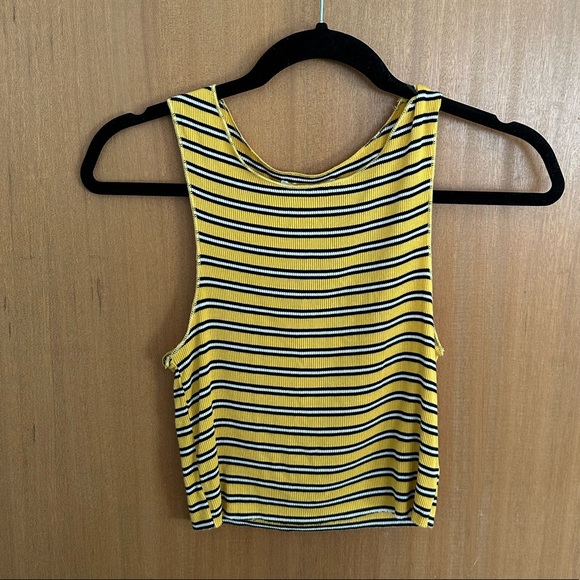lime blue Tops Lime Blue Yellow And Black Striped Tank Crop Top