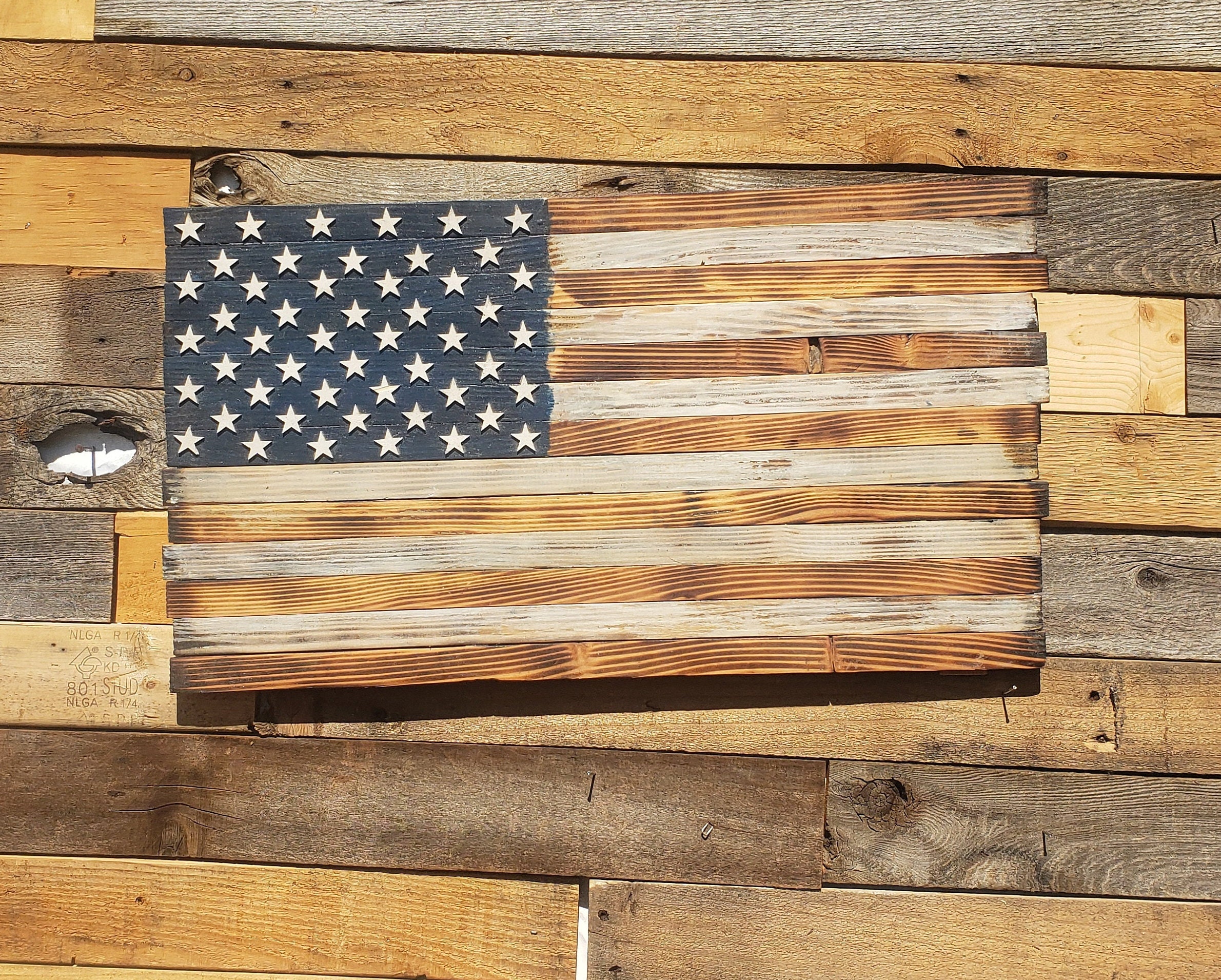Handmade american flag using reclaimed wood, rustic. Shop for various sizes, styles and prices of wood flags, service flags, home and office. These wooden american flags are dedicated to a specific event or group of people, our humble. The perfect addition to a home, crafted in the usa in lake tahoe. This wall decor item by lyonsignshopia has 2 favorites from etsy shoppers. All items are carved and burned entirely. Flags of valor produces wooden american flags handmade by american combat veterans in the usa. The best carved flags in the world. American flag home decor handcrafted by combat veterans using 100% usa lumber. Check out our american flag reclaimed wood selection for the very best in unique or custom, handmade pieces from our shops.