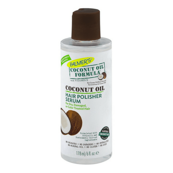 Palmer's Coconut Oil Formula Hair Polisher Serum 6 fl oz Coconut Oil Hair Polisher Serum Palmer's® coconut oil formula® moisture boost system restores hair experiencing dryness or damage with natural reparatives that instantly. Light weight serum with marula oil to help seal and protect from dryness. Easily glides to smooth down frizz and split ends. No parabens, phthalates, mineral oil, gluten or dyes.suggested use wet hair: With vitamin enow with 2x the coconut oil</<strong>li</strong>><<strong>li</strong>>made with. Coconut Oil Hair Polisher Serum.