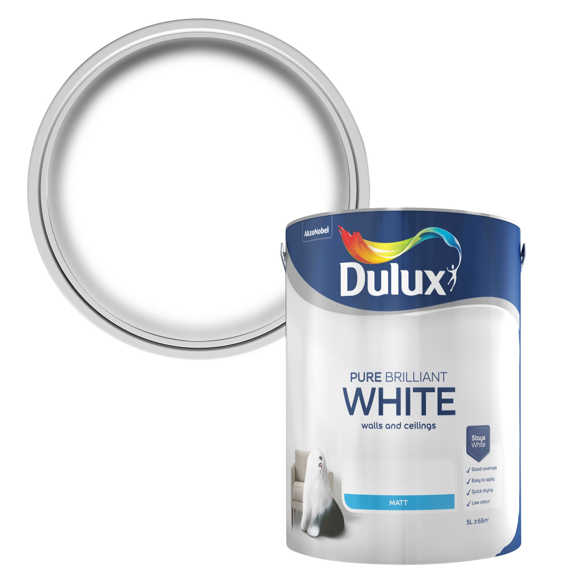 Dulux Pure brilliant white Matt Emulsion paint 5L Departments