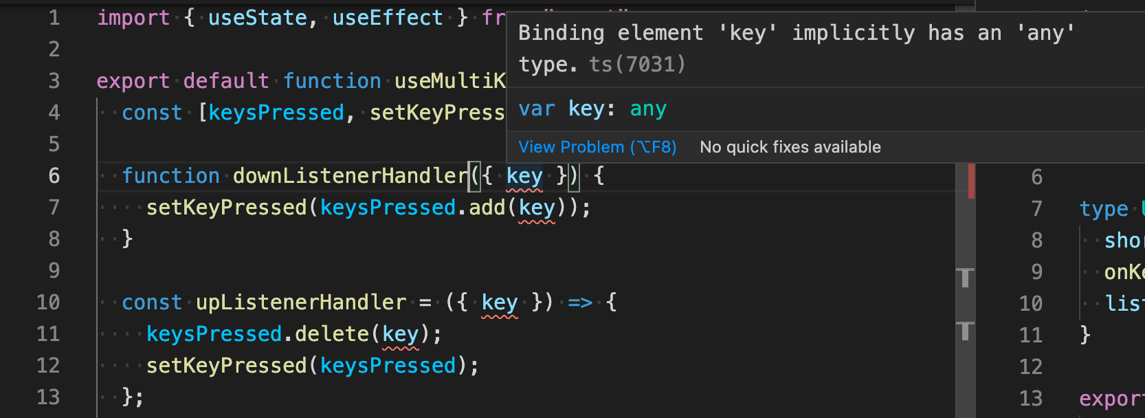 Detecting multiple keyboard presses, How to fix this typescript issue