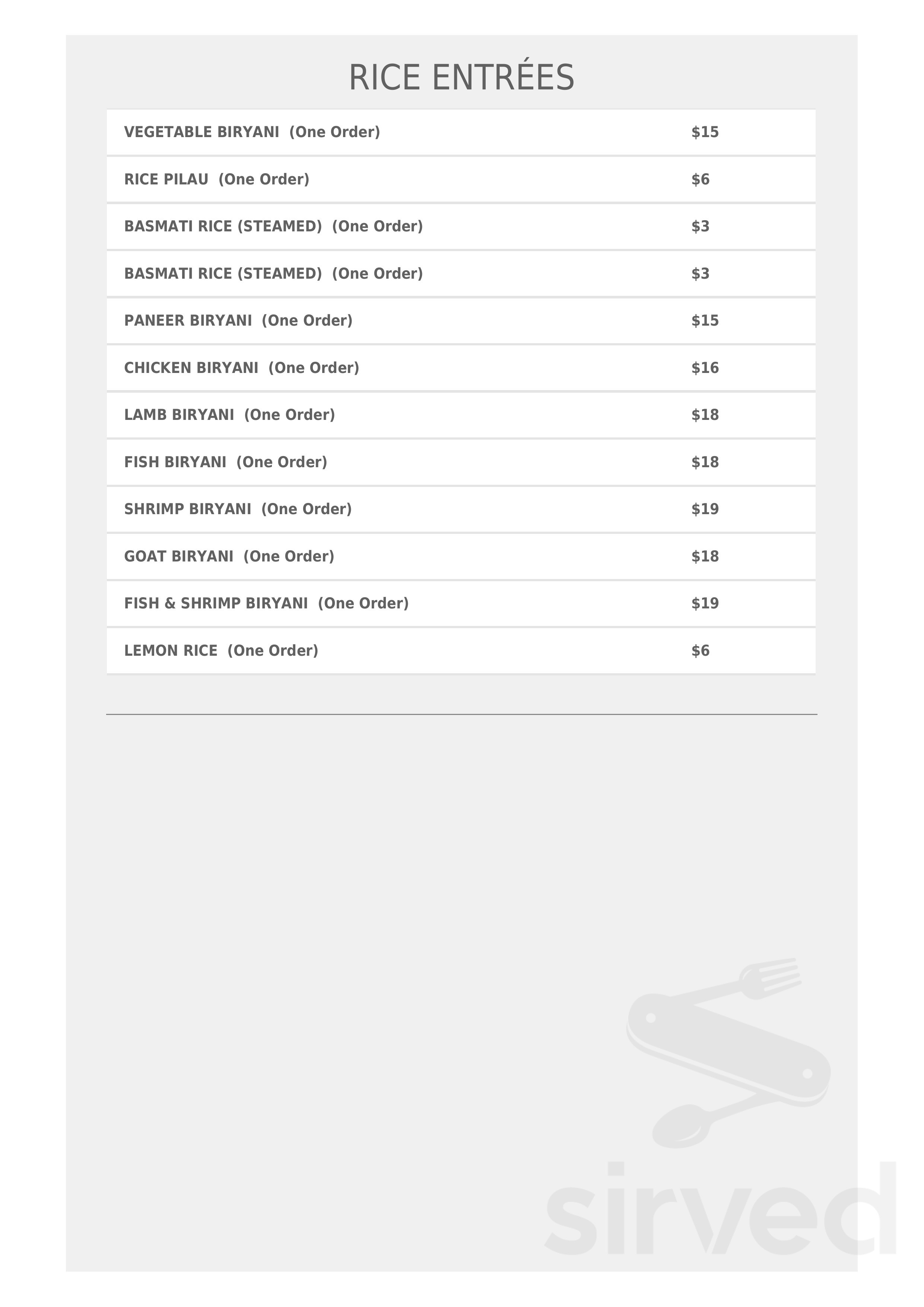 Mint Indian Cuisine menu in Boone, North Carolina, USA