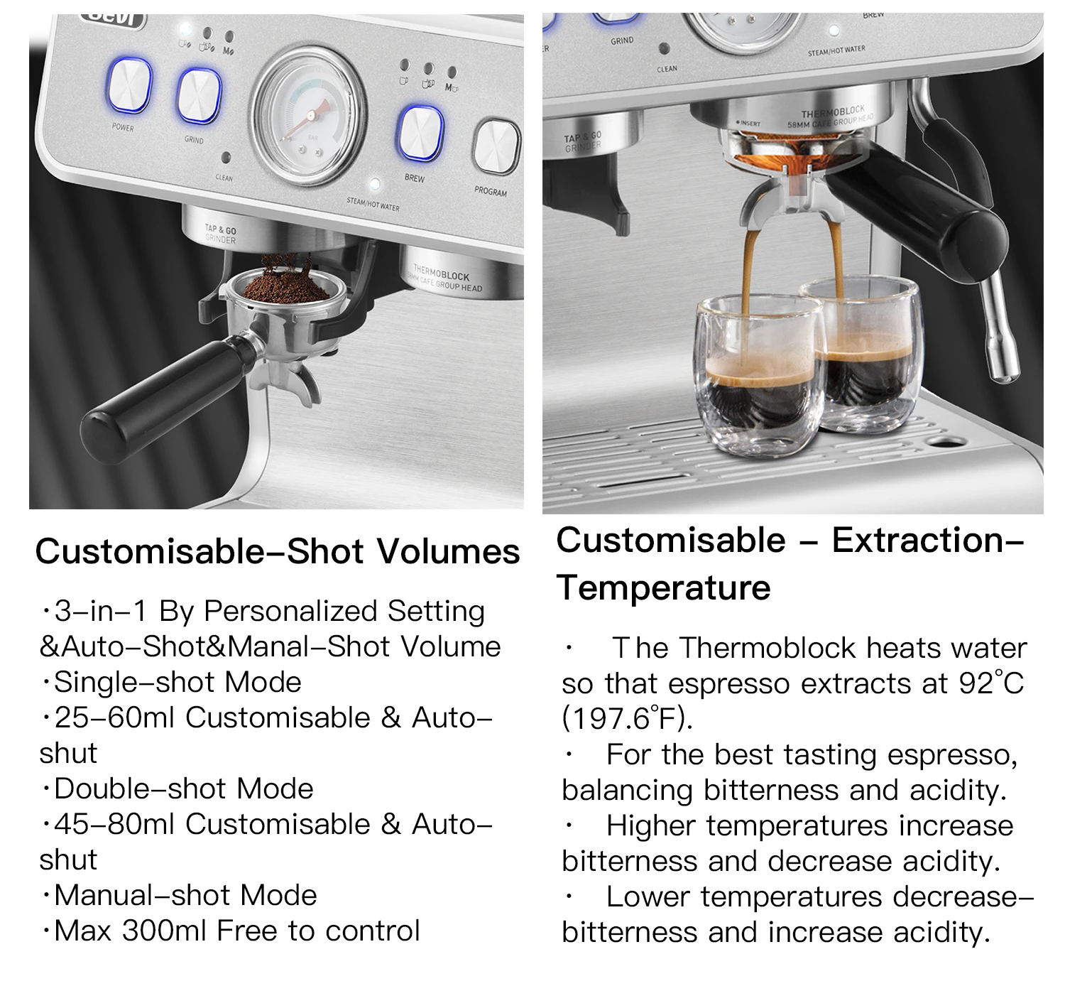 Gevi Barista Espresso Machine 20Bar Semi Automatic Espresso Machine Gevi Home Barista Espresso Machine With 20 bars of pressure, dual temperature. A good choice for coffee lovers. With its 20 bar professional italian pump and 1100w powerful pressure, gevi espresso machine extracts coffee with maximum flavor. Gevi Home Barista Espresso Machine.