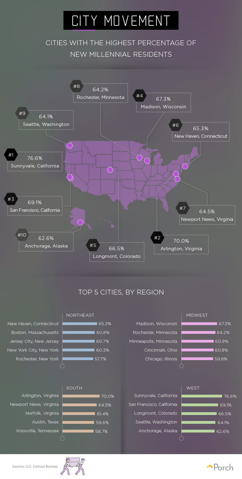 Millennial Moving Trends Porch Top 10 States Millennials Are Moving To Two florida cities, tampa and jacksonville, are among the most attractive cities in the united states for relocating millennials,. That’s according to a new study from personal finance website wallethub, which published a report on tuesday ranking the 50. It has the second highest millennial homeownership. Arlington had the highest rate of millennial movers from out of state at 5.2%. Top 10 States Millennials Are Moving To.