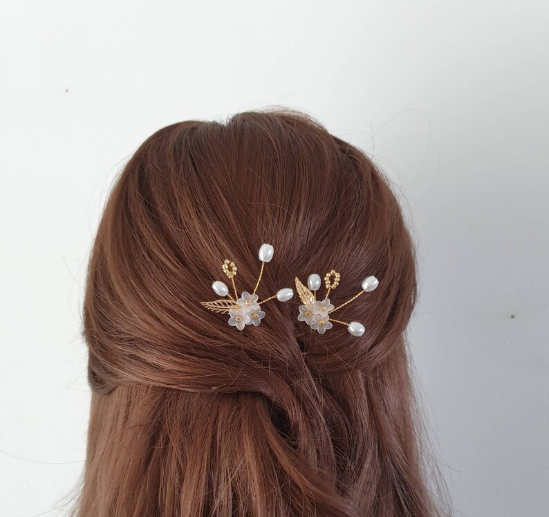 Set of 4 pearl wedding hair pins, Gold wired freshwater pearl branch bridal or bridesmaid hair Bridesmaid Hair Pins Gold On your wedding day, add a sparkly finishing touch to your bridal updo with icing's selection of bridal hair pins. Delicate stunning leaves, pearls & crystals bridal hair pins | bridesmaid hair pins | gold leaf bridal headpiece | wedding hair accessory The leaves of hair pins are all connected. Check out our gold hair pins wedding selection for the. Bridesmaid Hair Pins Gold.