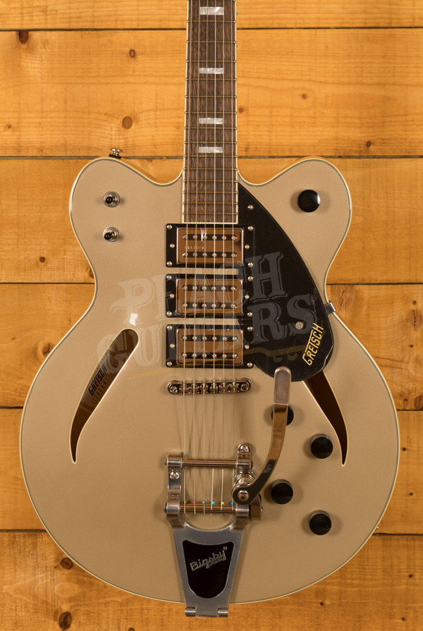 Gretsch Guitars G2627T Streamliner Center Block DoubleCut With Bigsby FSR Shoreline Gold Gretsch Guitars G2627T This item has been professionally set up. You are viewing a grestch streamliner g2627t semi hollow electric guitar in a natural aged finish. Buy a gretsch g2627t streamliner with broad'tron pickups, spruce center block, bigsby b70 and more. Revitalizing the best elements from the past. Happy customers, one piece of gear at a time! Gretsch Guitars G2627T.