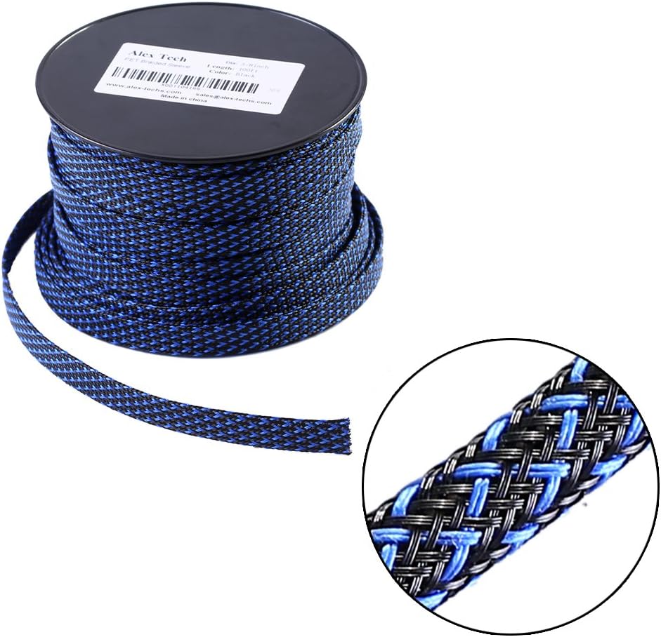 100ft 1 inch PET Expandable Braided Sleeving BlackBlue Alex Tech