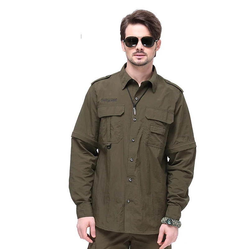 Long Sleeve Shirt Men Detachable Military Casual Shirts Mens Clothes