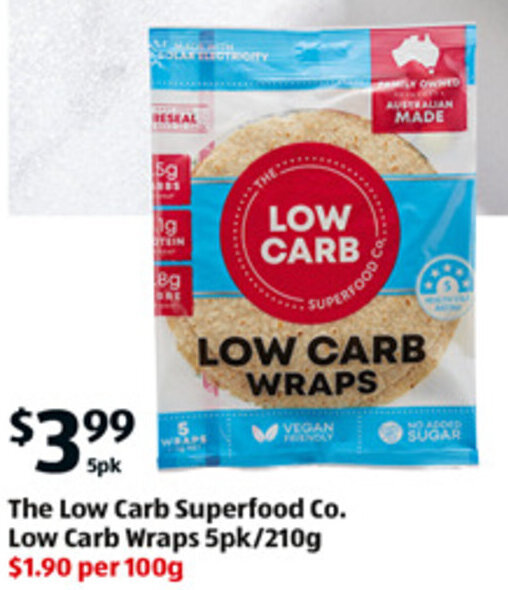 The Low Carb Superfood Co. Low Carb Wraps 5pk/210g offer at ALDI