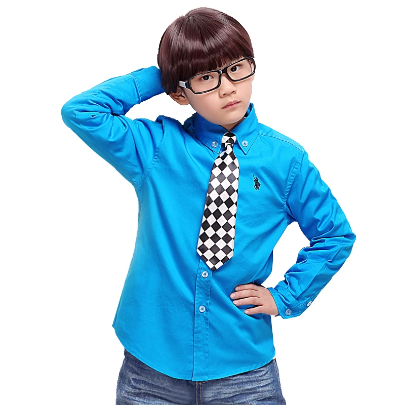 2T 14T New 2016 spring children's clothes boys casual white shirt baby boy's students solid pure