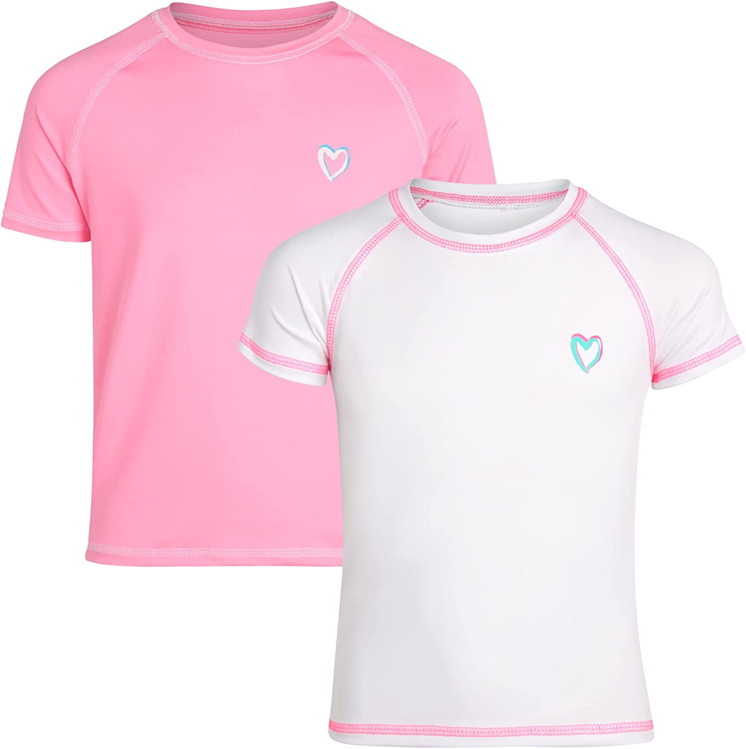 Pink Platinum Girls' Rash Guard Shirt 2 Pack UPF 50+ Short Sleeve