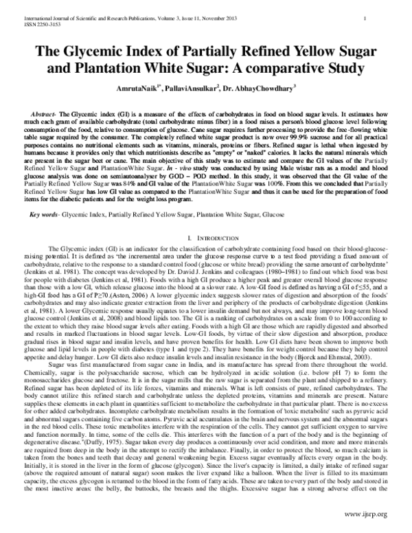 (PDF) The Glycemic Index of Partially Refined Yellow Sugar and Plantation White Sugar A
