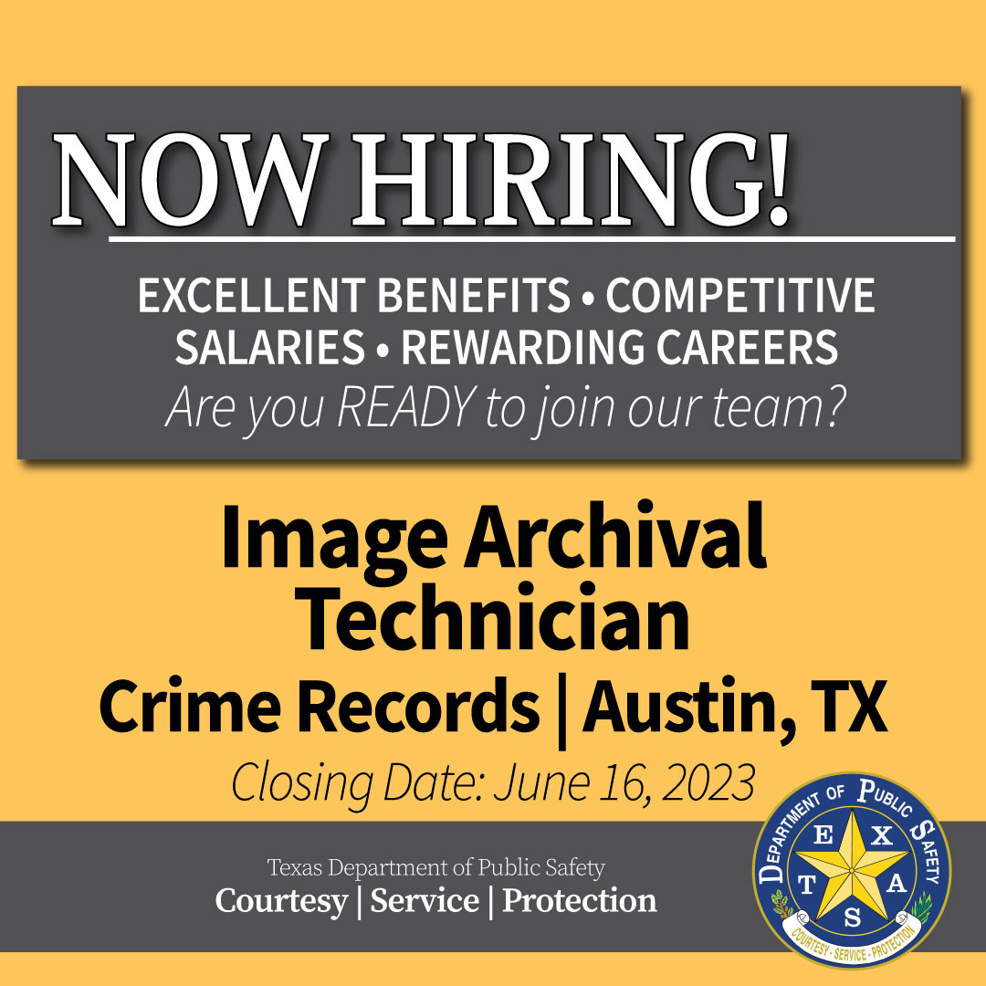 Texas DPS on Twitter "NOW HIRING Image Archival Technician (Crime