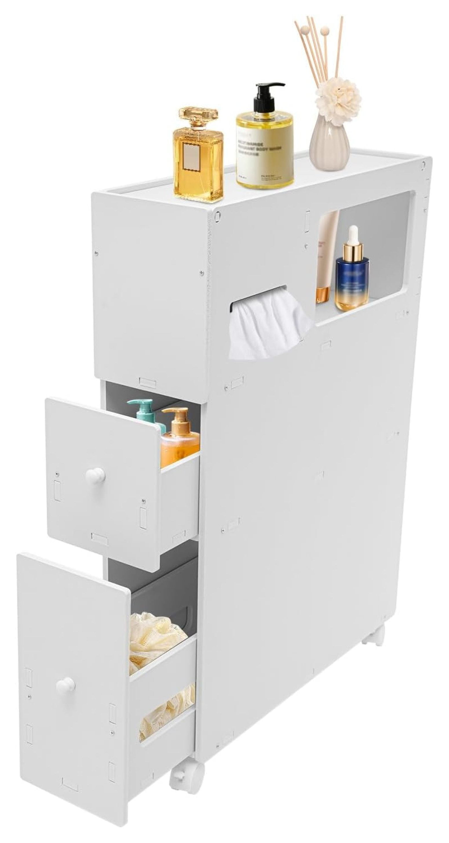 Rolling Storage Cart Slim [adjustable 3 layer storage cart] this rolling storage cart comes with 4.75 inches slim. Maximize storage in tight spaces with our slim rolling cart. Made with a slim profile that tucks seamlessly between appliances in the kitchen and laundry room, this bathroom organizer includes four. Effortlessly maximize storage capacity and declutter your. Crafted with durable steel and particleboard, this. 2. Rolling Storage Cart Slim.