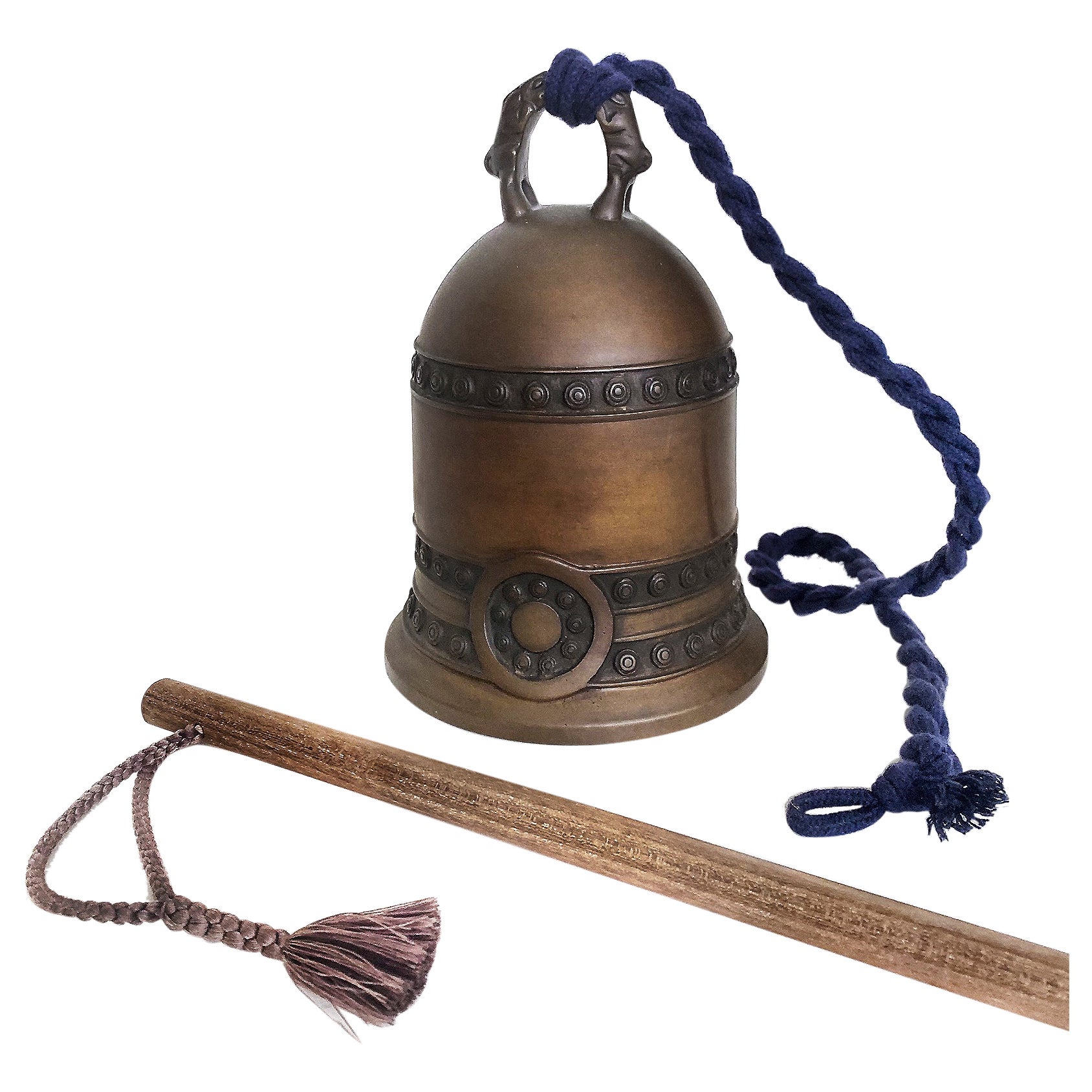 Japanese Antique Pair of Hand Cast Big Bronze Temple Bells with "Cloud