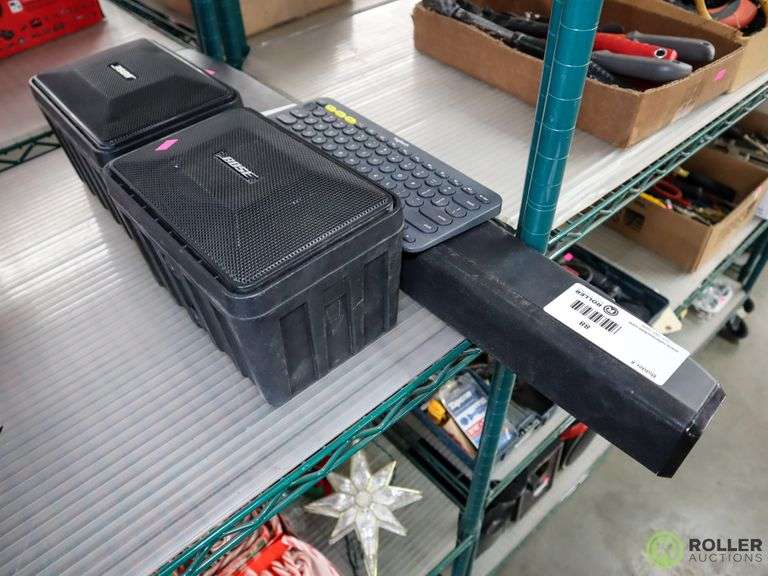 (2) Bose Speakers, Insignia Sound Bar, and Keyboard Roller Auctions