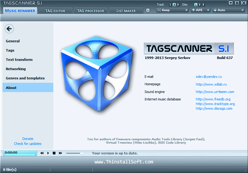 TagScanner download for free SoftDeluxe Baixar Tagscanner It can edit tags of most modern audio formats, supports id3v1/v2, vorbis comments, apev2, wma and mp4. Tool to organize and manage music collections by editing and adding tags, covers and lyrics. Tagscanner is a powerful tool for organizing and managing your music collection. Tagscanner é uma ferramenta que ajuda a organizar as tags id3 de seus arquivos de música.. Baixar Tagscanner.