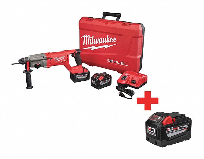 MILWAUKEE Cordless Rotary Hammer Kit DHandle, 18V DC, SDSPlus, 1 in