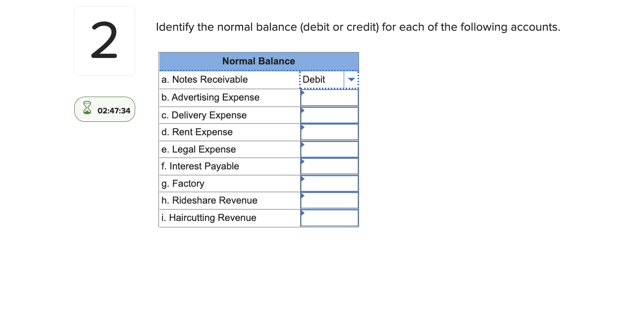 Solved Identify the normal balance (debit or credit) for