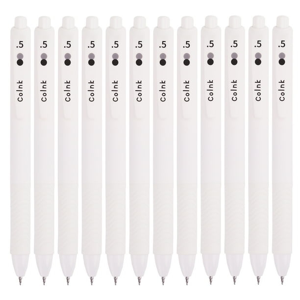 COLNK Gel Pens Fine Point 0.5mm , Retractable White Writing Pens Black