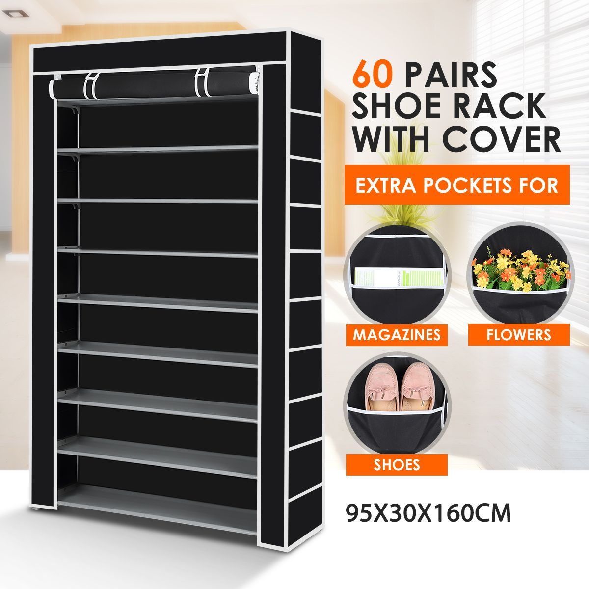 UDEAR 9 Tier Shoe Rack with Dustproof Cover Shoe Shelf Storage Shoe Shelf Cover Our shoe organization solutions include shoe racks for your entrance, shoe organizers for your closet, shoe boxes, shoe shelves, and more. Customize your storage with 4 fixed shelves and 6 adjustable/removable shelves made to allow you to organize clothing and more of varying sizes. With shoe cabinets, racks and organizers in different styles, colours and sizes, they fit any room.. Shoe Shelf Cover.