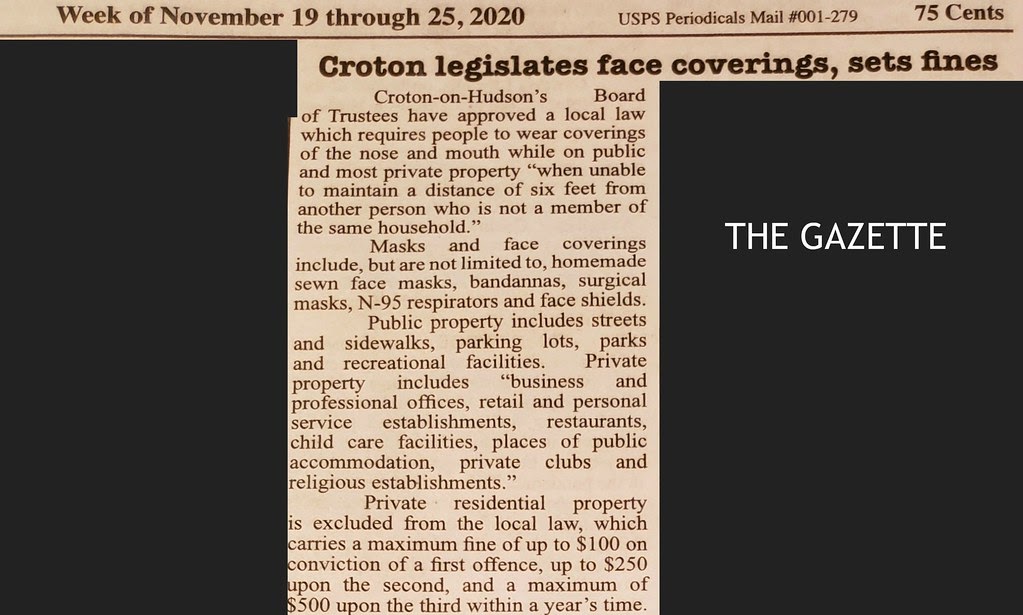 EverythingCroton GAZETTE MASKS, CROTON LEGISLATES FACE COVERINGS