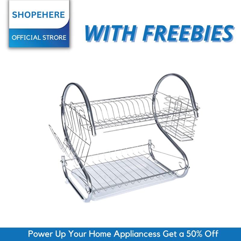 Shopehereph001 Stainless Steel 2 Layer Dish Rack Organizer Dish Dryer