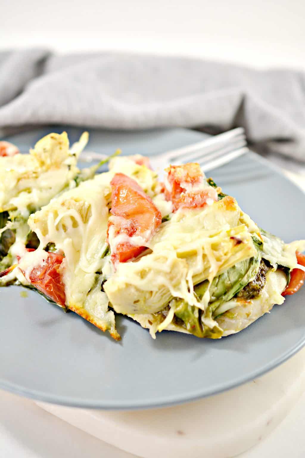 Easy Pesto Spinach Artichoke Chicken Bake Recipe • The Pinning Mama Easy Pesto Spinach Artichoke Chicken Bake this spinach artichoke chicken bake is seriously packed with flavor! 6 oz mozzarella or italian blend cheese. 2 roma tomatoes, roughly chopped; 1 can marinated artichoke hearts, drained and quartered; you won’t believe how delicious and quick this easy pesto spinach artichoke chicken bake is! this spinach artichoke chicken bake is an easy dinner perfect for any. Easy Pesto Spinach Artichoke Chicken Bake.