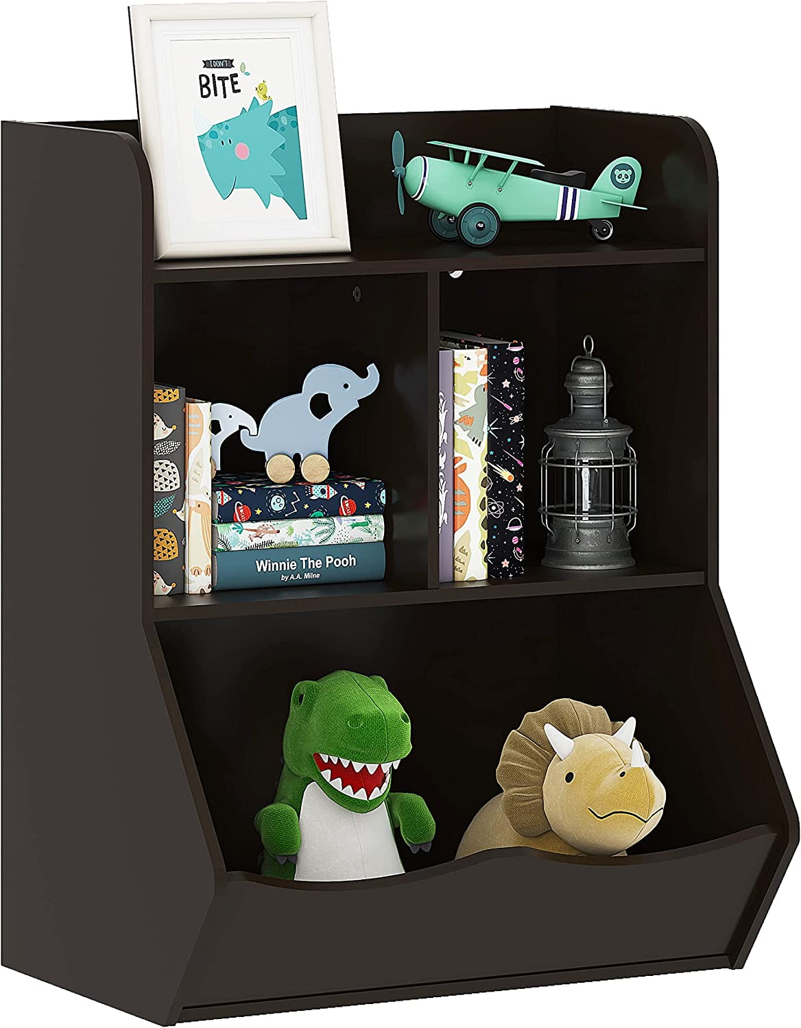 Kids Bookshelf, Bookcase Footboard, Toy Storage Cubby, Children's Toy Shelf, Toy Storage Toy Storage Cubby 1 angled open compartments for stylish storage in any room. 5 cubbies of compartmentalized storage space to meet daily storage needs. The top surface provides extra space for stacking. The toy storage cubby of the can is integrated with any decoration to obtain extra storage space. Multifunctional toy bin ideal for storing shoes, backpacks, sports equipment, yarn, fabric, art supplies. Toy Storage Cubby.