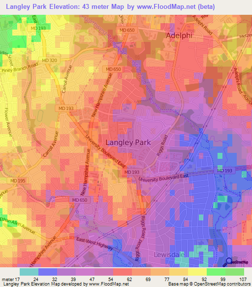 Elevation of Langley Park,US Elevation Map, Topography, Contour