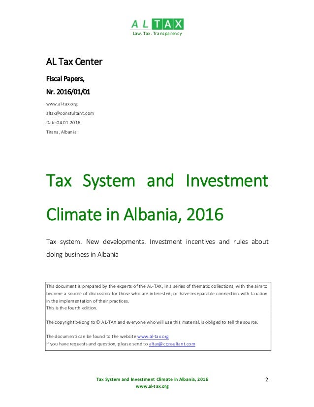 Tax system and Investment climate in Albania, 2016