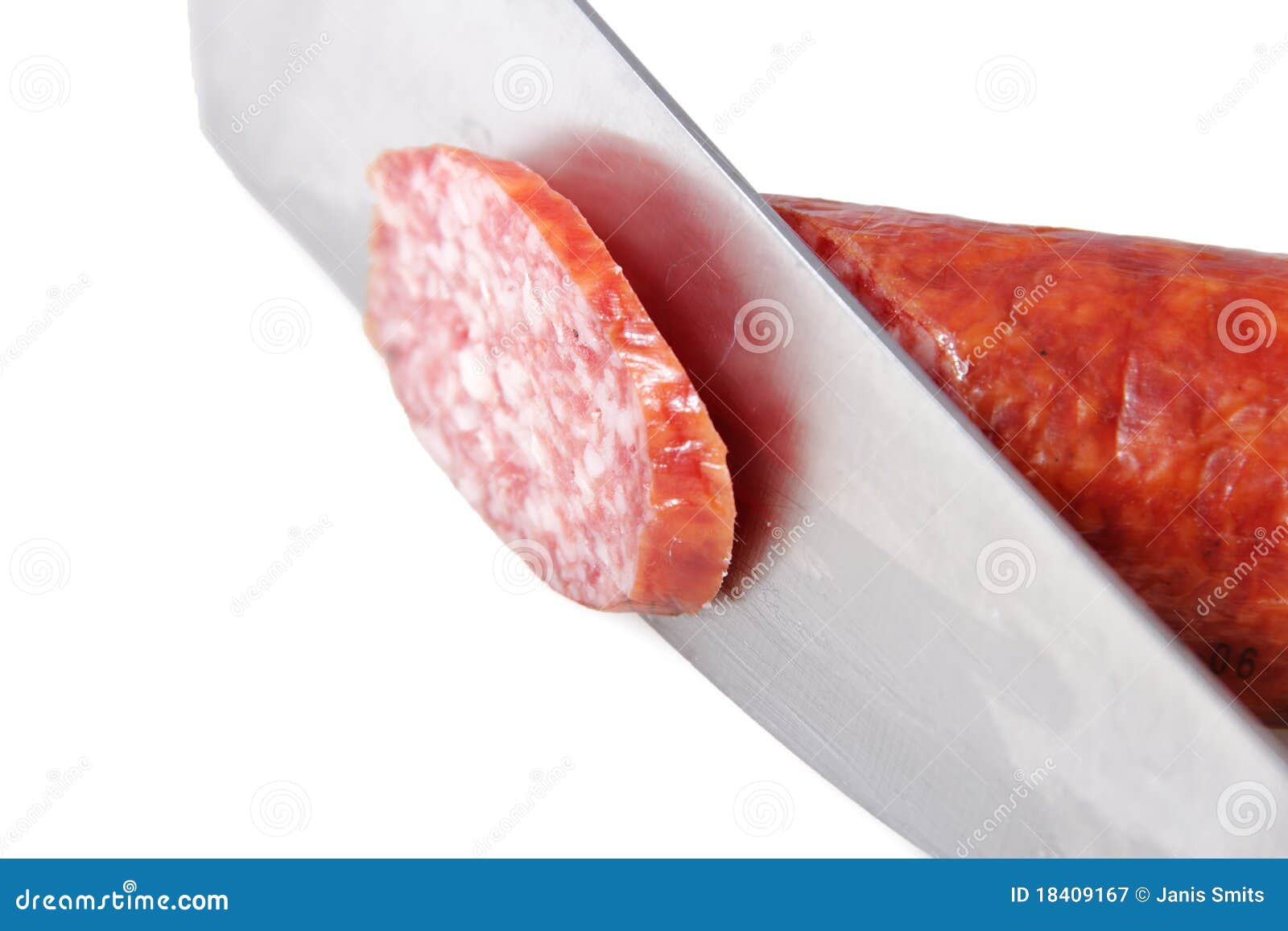 Knife and sausage. stock image. Image of beef, sausage 18409167