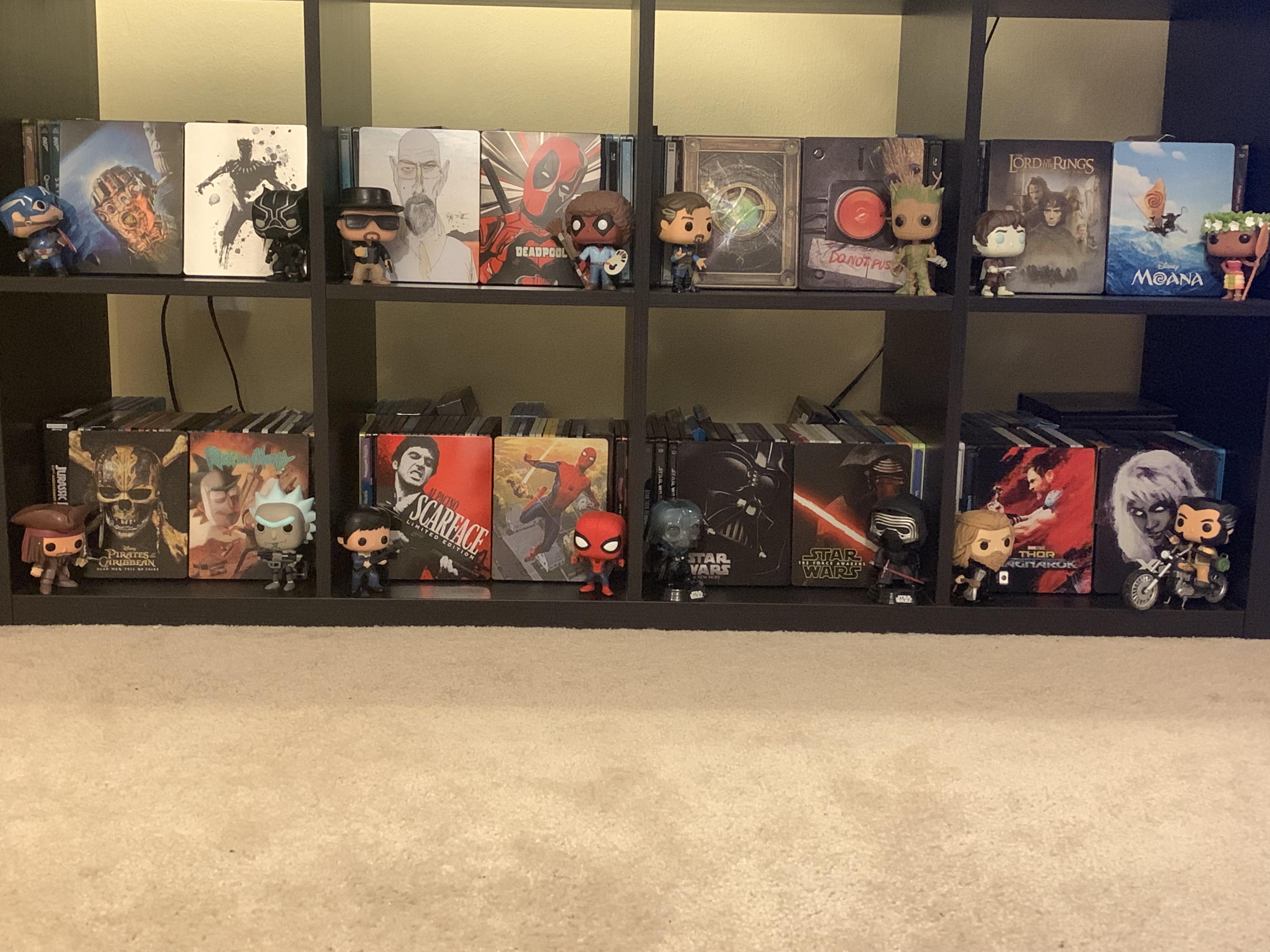 Decided to add some of my funko pops to my steelbook shelves! Probably