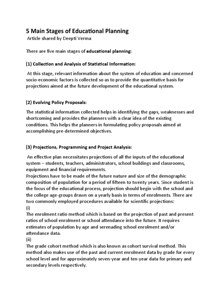 5 Main Stages of Educational Planning PDF Demography Information