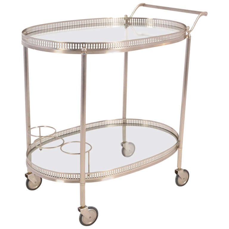French Vintage Chrome Oval Bar Cart at 1stDibs