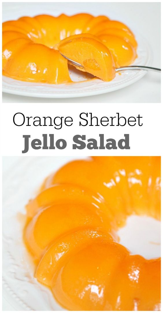 Orange Sherbet Salad "This is a great Easter or summer salad. It has Orange Jello Salad With Orange Sherbet Orange sherbet jello salad recipe. Indulge in a blast from the past with this fun and sweet orange jello salad! Pour boiling water into a bowl and add jello. Stir until dissolved, then add orange sherbet and stir until it melts completely. (it helps if you put the sherbet in the refrigerator for an hour or two to soften it. Orange Jello Salad With Orange Sherbet.