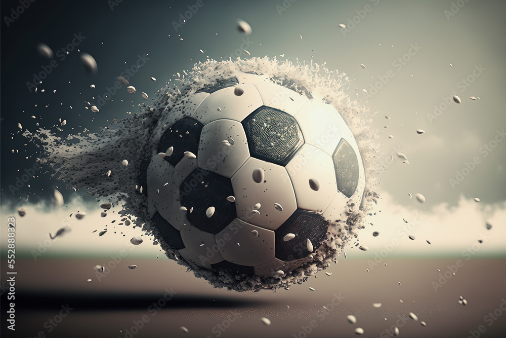 ai midjourney illustration of a black and white soccer ball flying