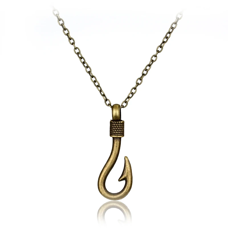 1pcs Fish Hook Pendant Necklace Barbed Fishing Bronze Fishhook Jewelry