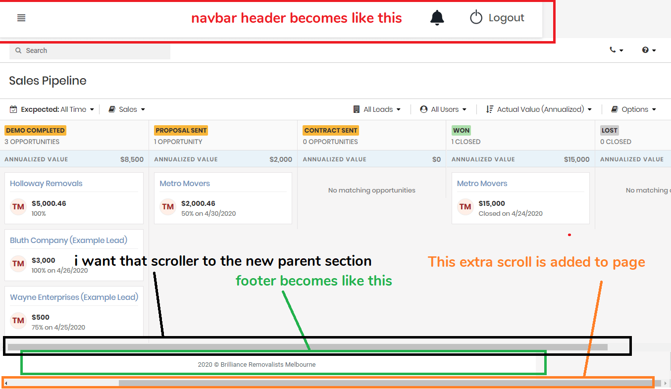 html By Adding CSS overflow to particular section, add scrollbar to