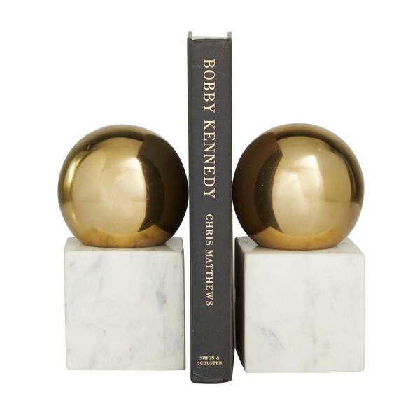 CosmoLiving by Cosmopolitan Gold Marble Orb Bookends (Set of 2) 042894