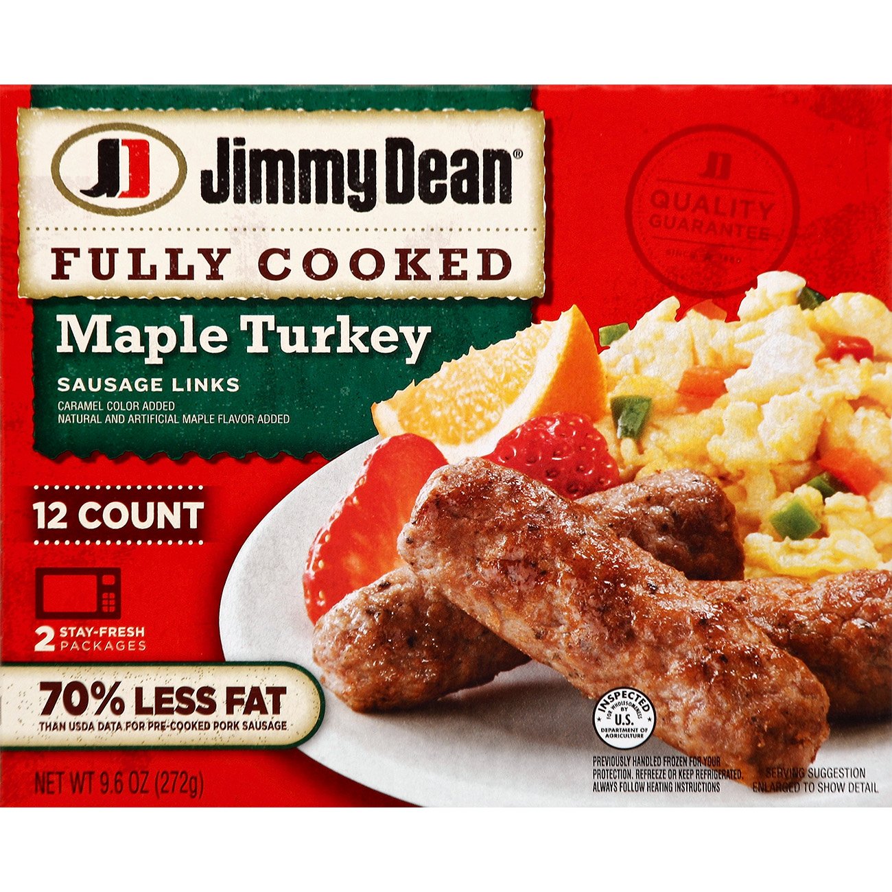 Sausage Links Jimmy Dean One 12 count package of jimmy dean fully cooked original pork sausage links. 8 grams of protein per serving. Perfect blend of seasonings in 100% pork sausage links. Read 98 reviews same page. Read reviews for average rating value is 4.5 of 5. Fully cooked sausage made with premium pork. Breakfast sausages are seasoned to perfection with our signature blend. Sausage Links Jimmy Dean.